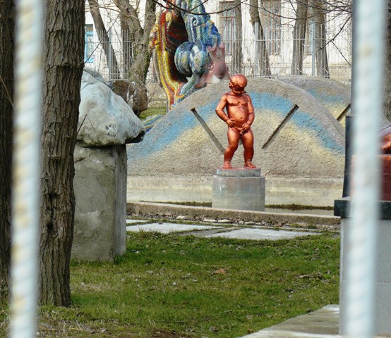 Голая женщина, писающий мальчик и царь с трезубцем. Фото из-за решетки |