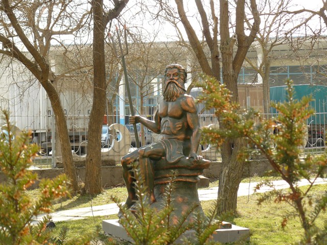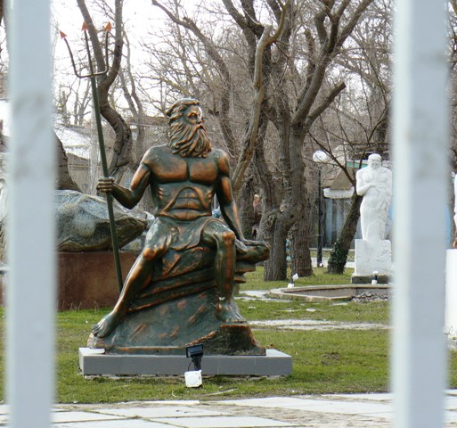 В Евпатории под окнами общеобразовательной школы собрались вместе: голая женщина, писающий мальчик и царь с трезубцем в руках. Только не подумайте ничего плохого. За высоким металлическим забором в сквере Шелковичном, где раньше мальчишки лазали по деревьям за красной, белой и черной шелковицей, а учителя ботаники разводили тутового шелкопряда, теперь поселились скульптуры. Летом музей городской скульптуры работает с утра и до вечера, а в межсезонье открытыми ворота мне ни разу не удалось увидеть. Вполне, возможно, что мое передвижение по старой Евпатории никак не вписывалось в график работы музея. Не стало исключением и 3–е марта. Сегодня ворота музея, оказались наглухо закрытыми, и мне ничего не оставалось делать, как достать из сумки фотоаппарат с телеобъективом. Первым в кадр попал морской царь Нептун с трезубцем в руках. Потом две обнаженные дамы и писающий мальчик…