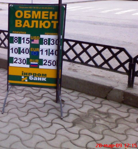 Курс обмена валют на 23 марта 2009 года. Украина. Крым. Евпатория. Фото мониторинг |