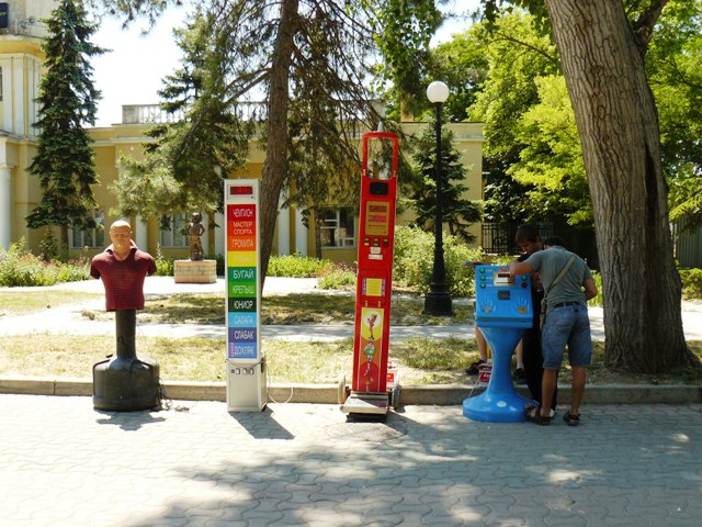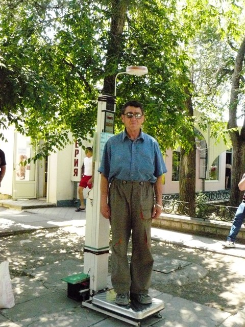 Крымский папарацци взял под козырек и первым сфотографировал на улице Фрунзе у стадиона «Авангард» мудреный говорящий прибор, который не только определяет вес, рост и объем легких за каких-то две гривны, но еще и дает разные советы, типа: «Вторая сойдите с весов», «Вам надо похудеть», «Да с вашей рожей…».