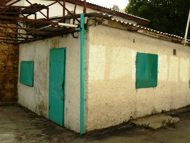 На фото: Приемный пункт стеклотары в Симферополе у кинотеатра "Мир".