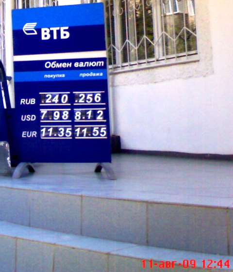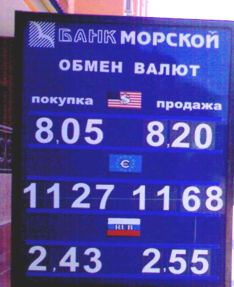 Каким будет курс обмена долларов США и рубля России в Крыму в сентябре 2009 года? С какой валютой: долларами США или рублями России, лучше сегодня отправляться на отдых в Крым? Как повлияет на курс обмена валют выделение Украине третьего транша кредита в сумме 3,3 млрд. долларов США Международным Валютным Фондом? Эти вопросы чаще всего задают наши читатели из Москвы, Санкт-Петербурга, Тулы, Новосибирска, Курска, Минска и Гомеля. Для того чтобы ответить на ваши вопросы, «Крымский аналитик» сегодня решил дополнить наш традиционный фото мониторинг курса обмена валют анализом ситуации на валютном рынке Украины и Крыма, который по просьбе крымских журналистов провел директор Крымского регионального управления «ПриватБанка» Борис Финкельштейн. Но перед тем как вы услышите мнение валютного эксперта, мы подведем итоги фото мониторинга курса обмена валют в Крыму. «Крымский папарацци» 11 августа 2009 года провел традиционный фото мониторинг в Евпатории. В киосках по обмену валют в Евпатории 11 августа 2009 года 100 долларов США покупали у туристов по 795 – 808 гривен. 1000 рублей России 11 августа 2009 года в пунктах обмена валют Евпатории покупали у туристов из России по 238 – 243 гривны. Подробнее о курсе обмена наличной валюты смотрите на прилагаемых фото.
