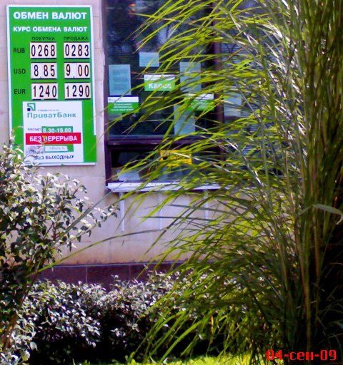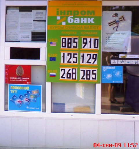 Финансовые новости. Украина. Киев. Национальный банк Украины установил на 7 сентября 2009 года следующий официальный курс гривны по отношению к основным иностранным валютам. 100 долларов США = 799.5000 гривны. 100 евро = 1140.2469 гривны. 10 рублей России = 2.5296 гривны. (Офіційний курс гривні щодо іноземних валют 07.09.2009. Детальніше. 100 доларів США = 799.5000. 100 євро = 1140.2469. 10 російських рублів = 2.5296). Средневзвешенный курс на межбанковском рынке 3.09.2009 года. 100 долларов США = 812.68 гривен. (Середньозважений курс на міжбанківському ринку 03.09.2009. Детальніше. Грн. за 100 доларів США 812.68). Средневзвешенный курс на наличном рынке валют. Покупка: 100 долларов США = 845.08 гривны. Продажа: 100 долларов США = 846.57 гривны. (Середньозважений курс на готівковому ринку 02.09.2009. Детальніше: Купівля, грн. за 100 доларів США 845.08. Продаж, грн. за 100 доларів США 846.57). Валютные аукционы 2 сентября 2009 года. Общий объем выполненных заявок 44.01 млн. долларов США. Средневзвешенный курс аукциона 8.01 гривна за 1 доллар США. (Валютні аукціони 2.09.2009. Детальніше. Загальний обсяг задоволених заявок, млн. доларів США 44.01. Середньозважений курс аукціону, грн. за 1 долар США 8.01). Продажа валюты на межбанковском рынке 2 сентября 2009 года. Всего - 219.6 млн. долларов США. (Продаж валюти на міжбанківському ринку 02.09.2009. Детальніше. Усього, млн. дол. США 219.6). Курс обмена наличной валюты в Крыму. 4 сентября 2009 года.