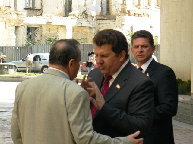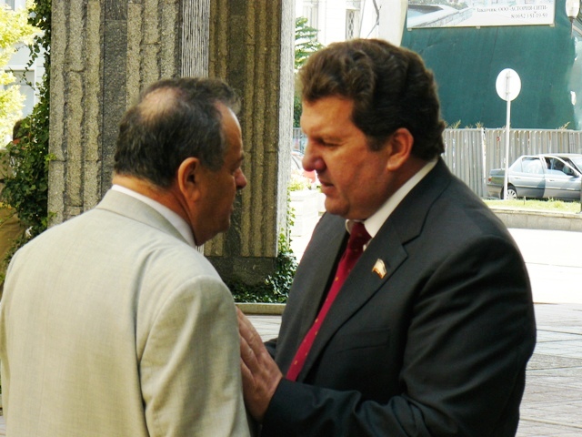 Фоторепортаж: Интим на панели Верховной Рады Крыма Фото. Крым. Симферополь. Персоны: Ефим Фикс, Сергей Куницын, Василий Киселев. Для Сергея Куницына, одного из участников неудачного "государственного переворота в Крыму", сессия Верховного Совета Крыма оказалась «безусловно нелегитимной». Об этом, и о своем "товарище по несчастью" Василие Киселеве, исключенном из партии Регионов, поговорил с журналистами глава Севастопольской городской государственной администрации Сергей Куницын у парадного подъезда казенного дома. Пока Сергей Куницын размышлял о превратностях судьбы и давал Советы лидеру партии Регионов Виктору Януковича к крымскому папарацци подошел собкор "Украины казацкой", вручил визитку и попросил сфотографировать его на фоне Куницына и Верховной Рады Крыма. Крымский папарацци тут же вытянулся по стойке "смирно", крикнул: "Любо", и щелкнул его на фоне двух крымских достопримечательностей. Так, что теперь господин З. может предьявлять свое фото на фоне Куницына милиционерам - охранникам Севастопольской городской государственной администрации вместо пропуска. В отличие от господина З., Ефим Фикс у крымского папарацци ничего не просил и визиток ему не дарил. Он поступил как настоящий мужчина. Дождавшись, когда выключат телекамеры, Фикс подошел к самому Куницыну и на глазах немногочисленных журналистов интимно пообщался со ставленником президента Украины Виктора Ющенко в Севастополе у парадного входа в симферопольский "пентагон".