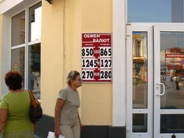 Новости Украины. Фото мониторинг курса обмена валют в Крыму. Симферополь - Евпатория. Курс обмена доллара США в обменных пунктах и филиалах коммерческих банков Украины в Крыму. Курс обмена валют. Крымский папарацци 18-21 сентября 2009 года провел фото мониторинг курса обмена валют в Симферополе и Евпатории. За 100 долларов США в Крыму платили по 820-850 гривен. А продавали те же 100 долларов США клиентам банков в Евпатории и Симферополе по 860-870 гривен. Тысячу рублей России в Крыму меняли на 245-270 гривен. Продавали 1000 рублей России клиентам банков по 280 гривен. 100 ЕВРО покупали у туристов по 1200-1245 гривен, а продавали эти же 100 ЕВРО в пунктах обмена валют Евпатории и Симферополя по 1265-1270 гривен. А теперь, для сравнения: курс обмена наличной валюты в Крыму. 8 сентября 2009 года. 100 долларов США продавали населению в пунктах обмена валют и филиалах коммерческих банков по 885 - 895 гривен. А покупали эту же сотню долларов США у туристов из России и республики Беларусь в Евпатории по 865 - 870 гривен. Подробнее о курсе валют в Крыму смотрите на фото мониторинге "Крымского аналитика".