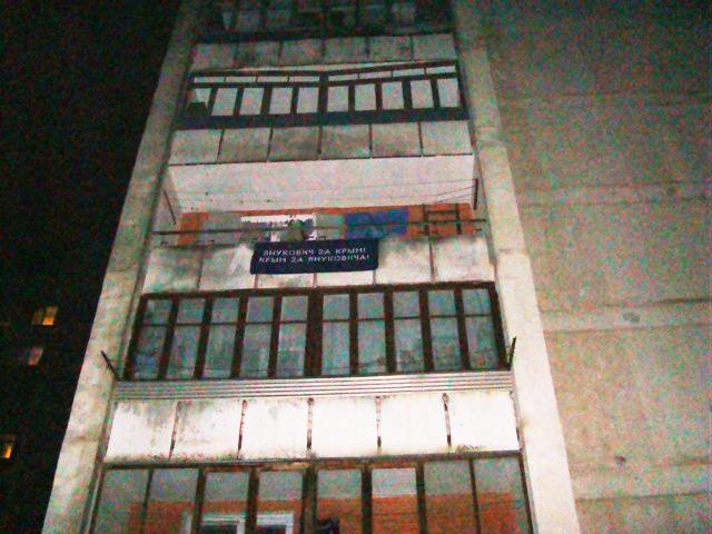 Сообщаю, что около 21.00. в пятницу 15.01.2010 года, мною доверенным лицом кандидата на пост Президента Украины В.Ф. Януковича Дмитрук Г.С. выявлены массовые факты развешивания агитационных материалов якобы в поддержку кандидата на пост Президента Украины В.Ф. Януковича, изготовленные кустарным способом. Указанные транспаранты вывешены на уровне 3-5 этажей, на балконах жилых квартир и лестничных пролетов (сушилках) наружных частей зданий по ул. Чапаева (от пр. Победы до ул. Луговой), ул. Демышева (напротив бывшего кафе «Лалэ»), Интернациональная,101, Ленина,52 и др. При этом, в нарушение ЗаконаУкраины «О выборах Президента Украины» на транспарантах нет сведений об учреждении, осуществивших их изготовление.