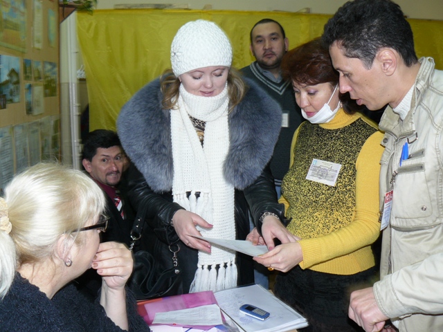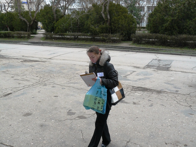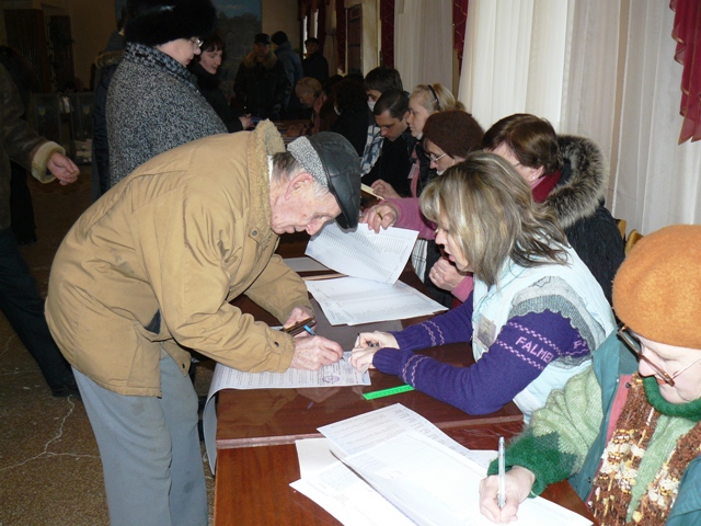 Крым. Фото. Выборы президента Украины в Евпатории. Реестр оживил покойников и похоронил живых  17 января в восемь утра одним из первых прихожу на свой избирательный участок в горбольнице. Протягиваю паспорт. В списке избирателей ошибка. В реестре переврали отчество. Не сильно, на одну букву. Чтобы исправить и выдать мне избирательный бюллетень, тут же бесплатно делают ксерокс моего паспорта, вносят исправление и вручают длиннющий бюллетень с фамилиями тех, кто хочет. В кабине за занавеской ставлю птицу своему кандидату, опускаю бюллетень и… после исполнения гражданского долга, достаю фотоаппарат, записываюсь в тетрадь для прессы. И на законных основаниях начинаю свой первый фоторепортаж с выборов президента Украины. Следующий избирательный участок, куда я решил заглянуть, находится во Дворце спорта. И сразу попадаю на конфликт. Мужчину пытаются отправить в суд, несмотря на то, что он уже «сто лет живет» в своей квартире не меняя адреса. Интересуюсь у члена комиссии, а почему, собственно в суд? - А нам с утра запретили вносить изменения. Приходил член окружкома от «оранжевых», сказал, что так решил суд в Киеве. - Дальше идут переговоры с юристами, которые объясняют неграмотному члену, что никакой суд не может отменить ЗАКОН УКРАИНЫ. Оказалось, что «оранжевый член» соврал прямо с утра.