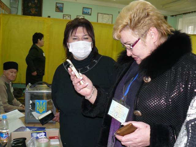 Евпатория выборы17 января в восемь утра одним из первых прихожу на свой избирательный участок в горбольнице. Протягиваю паспорт. В списке избирателей ошибка. В реестре переврали отчество. Не сильно, на одну букву. Чтобы исправить и выдать мне избирательный бюллетень, тут же бесплатно делают ксерокс моего паспорта, вносят исправление и вручают длиннющий бюллетень с фамилиями тех, кто хочет.  В кабине за занавеской ставлю птицу своему кандидату, опускаю бюллетень и… после исполнения гражданского долга, достаю фотоаппарат, записываюсь в тетрадь для прессы. И на законных основаниях начинаю свой первый фоторепортаж с выборов президента Украины. Следующий избирательный участок, куда я решил заглянуть, находится во Дворце спорта. И сразу попадаю на конфликт. Мужчину пытаются отправить в суд, несмотря на то, что он уже «сто лет живет» в своей квартире не меняя адреса. Интересуюсь у члена комиссии, а почему, собственно в суд? - А нам с утра запретили вносить изменения. Приходил член окружкома от «оранжевых», сказал, что так решил суд в Киеве. - Дальше идут переговоры с юристами, которые объясняют неграмотному члену, что никакой суд не может отменить ЗАКОН УКРАИНЫ. Оказалось, что «оранжевый член» соврал прямо с утра.