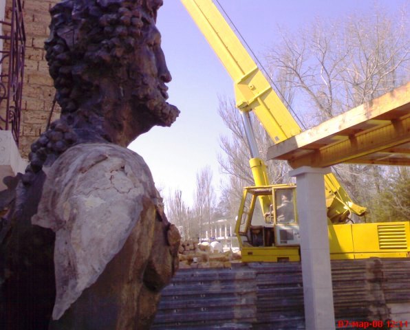 Вот, к примеру, на набережной имени Горького стоит скульптура древнего грека с кувшином. Целыми днями он наблюдает за тружениками-строителями, возводящими на песке капитальное многоэтажное здание.