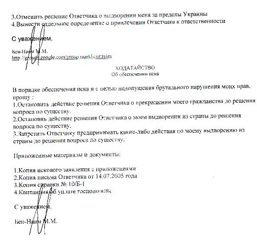 Мы публикуем короткое интервью Марка Бен-Наима и некоторые документы из высосанного из пальца «дела об экстрадиции». Мы надеемся, что эти документы помогут нашим читателям уяснить тот факт, что ГОСУДАРСТВО УКРАИНА ОБЯЗАНО ЗАЩИЩАТЬ ПРАВА И СВОБОДЫ ГРАЖДАН УКРАИНЫ! А ГРАЖДАНИН УКРАИНЫ МАРК БЕН-НАИМ БЫЛ, ЕСТЬ И БУДЕТ ГРАЖДАНИНОМ ВЕЛИКОЙ ДЕМОКРАТИЧЕСКОЙ УКРАИНЫ, НЕВЗИРАЯ НИ НА КАКИЕ ПРОИСКИ ВСЯКОГО РОДА МОСКАЛЕЙ, ОКОПАВШИХСЯ В ПРАВООХРАНИТЕЛЬНЫХ ОРГАНАХ УКРАИНЫ!