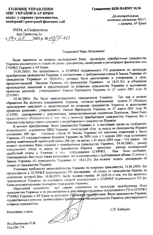 А чтобы расставить все точки над «i» «Крымский аналитик» специально для особо брехливых «оранжевых» журналистов и господ в форме из ЦОС ГУ МВД УКРАИНЫ В КРЫМУ, решил разъяснить ситуацию с гражданством Марка Бен-Наима.