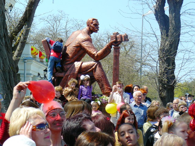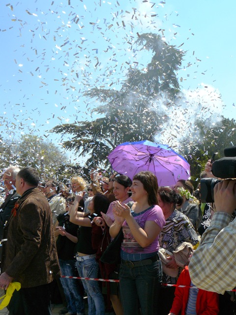 Ну, а для тех, кому лень встать и надеть тапочки: первомайское фото от крымского папарацци со всеми участниками и самым настоящим взрывом в центре Евпатории. Хотите видеть? Ну так, смотрите и не говорит, что вам это не показывали.