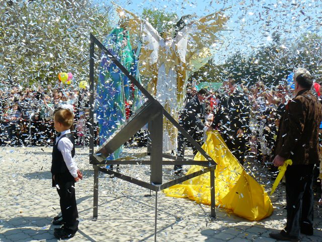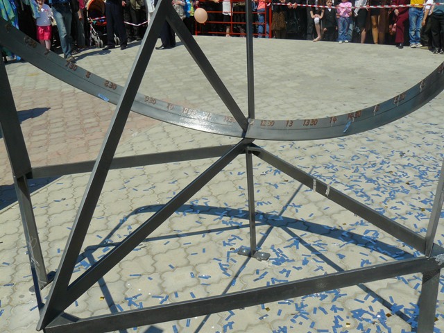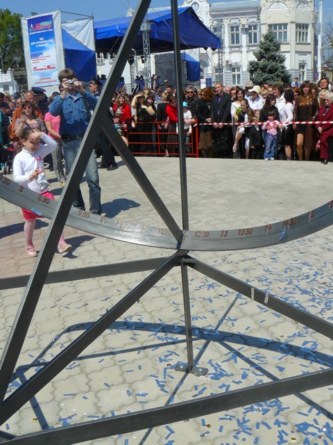 Вы все, конечно, поняли. Ну, не тупые же, в конце-концов. Когда сбросили покрывало и произнесли научную речь по этому поводу, крымский папарацци сфотографировал гномон, циферблат, тень и всех участников. Потом сверил всё это с часами на башне Евпаторийского горисполкома, которыми управляют яйцеголовые из космоса, и остался весьма доволен.