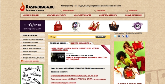 На сайтах Joybuy.ru, Izumgoroda.ru, Kupibonus.ru и др. проходила акция «Академии красоты и стиля», где можно было купить купон и получить 90% скидку на курс обучения для парикмахеров, стилистов и пр. Акция проходила в августе прошлого года, можно было приобрести неограниченное количество купонов на «семинары красоты». Стоимость каждой программы — 600 рублей (обычная цена — 6000 рублей). В итоге люди купили купоны, оплатили обучение заранее, но на курсы многих так никто и не позвал.