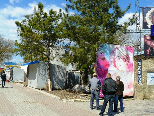А потом, произошло то, что должно было произойти в цивилизованном государстве. Предприниматели собрали товар и прилавки,  и уехали на свои склады. Покинули парк и сотрудники милиции, и люди в штатском. И только груда мусора и изувеченные крымские сосны напоминают теперь евпаторийцам о творимом на курорте некоторыми особо авторитетными гражданами беспределе.