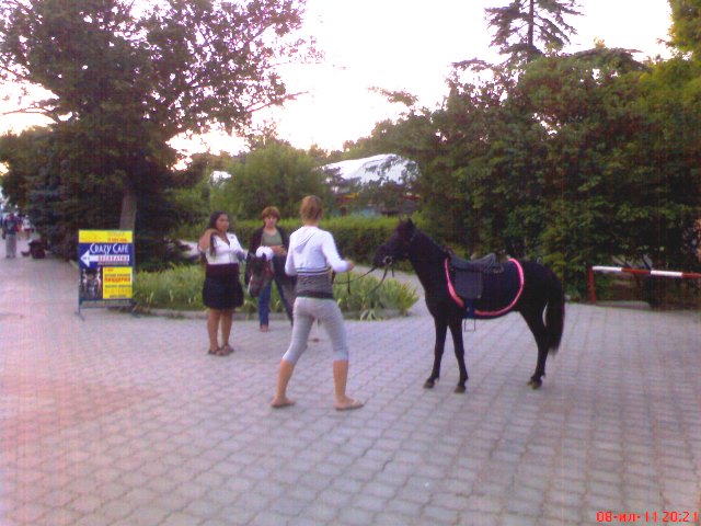 Вымогатели прячут лицаПохоже, наглость евпаторийских дельцов, использующих в целях наживы животных, перешла все границы. 8 июля 2011 года три девицы, расположившись в тридцати метрах от здания горотдела милиции, вымогали деньги с туристов, за то, что они фотографировали на улице Дувановской. Вот, только на этот раз начинающим рэкетирам крупно не повезло. Они стали вымогать деньги с депутата евпаторийского горсовета Марка Пурима, за то, что он посмел сфотографировать момент, когда измученное животное стало вырываться из рук девицы и брыкаться. Одна из девушек, увидев, что их фотографируют, стала кричать на всю улицу: «Деньги плати!». Депутат вернулся и поинтересовался, на каком основании они запрещают фотографировать в общественном месте, и потребовал соответствующие документы. Понятно, что никаких запретов на фотосъемку в Евпатории не существует. Мало того,  у юных рэкетиров не оказалось и разрешений на использование животных для получения нетрудовых доходов. Этот бизнес в Крыму запрещен, и владельцы пони уже привлекались к административной ответственности ветеринарной службой Евпатории. «Крымский аналитик» в очередной раз публикует фотографии тех, кто занимается незаконным бизнесом в Евпатории и задает вопрос: «Неужели этих правонарушителей, расположившихся в тридцати метрах от горотдела милиции, не видят сотрудники милиции? А может,  туристам и депутатам пригнать лошадей вместе с наездницами на улицу Пушкину к дверям горотдела милиции, чтобы их наконец-то заметили стражи порядка?».