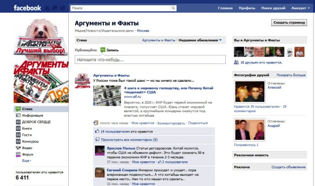 Создаем страницуИтак, вы определились, что вам нужна именно страница. Перед началом приготовьте хорошую фотографию, например, логотип вашей компании, определитесь с названием и напишите текст о проекте. Создать страницу можно здесь. Сначала нужно выбрать ваш род деятельности: местный бизнес или место, компания, организация или учреждение, бренд или продукт, исполнитель, музыкальная группа или известная личность, развлечения. Затем нужно выбрать категорию, например, «Медиа, новости, издательское дело». Загружаем фотографию страницы. Можно сразу рассказать о странице своим друзьям, но я рекомендую отложить это до тех пор, пока вы не наведете там порядок. Указываете адрес своего сайта и пишите немного о своем проекте (до 255 слов). Страница готова. Дальше вы увидите алгоритм действий: пригласить друзей, обновить статус, продвигать страницу на вашем сайте и т.д. В левом столбике внизу — количество людей, которые нажали кнопку «Мне нравится» и добавили вашу страницу в свои ленты новостей. По центру — ваши сообщения и ссылки на тексты с комментариями пользователей. Заводим первых читателейДля начала на страницу вы можете пригласить своих друзей: cистема покажет список и вам останется только отметить тех, кого вы видите в качестве своих будущих читателей. Те, кто уже являются поклонниками страницы, будут неактивны для приглашений и выделены светло-серым цветом. По умолчанию администратором страницы является тот, кто ее создал. Вы можете добавить новых администраторов. Для этого заходите в раздел «Все» администраторы и в свободном окошке начинаете набирать имя нужного человека. Сохраняете изменения. Обновлять статус, загружать фотографии и видео на свою страницу можно, например, с помощью специального ящика электронной почты. Его адрес вам сообщат, когда вы создадите страницу. Это специальный электронный адрес для вашей страницы Facebook – его нельзя сообщать никому, кроме других администраторов страницы, иначе любой, кто его узнает, сможет писать на вашу страницу все, что ему вздумается. В строке темы письма вы сможете указать краткое описание для фотографии или видео, если хотите загрузить на сайт фотографию или видеозапись. Если вы хотите обновить статус, также укажите его в теме письма. Для удобства сохраните этот адрес в списке контактов. В любое время вы можете изменить личный электронный адрес для загрузок. СтатистикаСтраницы позволяют администраторам смотреть статистику. Например, там можно посмотреть графики, из которых видно количество активных пользователей за день, за неделю, за месяц. Там же можно посмотреть количество новых людей, которым понравилась ваша страница за конкретный период, за все время, и число людей, которые взаимодействовали с вашей страницей (включая поклонников и не поклонников).  Можно смотреть демографические характеристики вашей аудитории (пол, возраст, место жительства). Там также видно, что конкретно смотрели пользователи: профиль, стену, фотографии, форум и т.д.