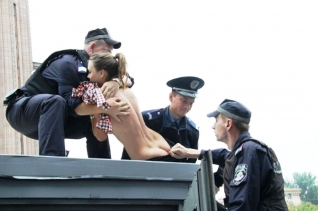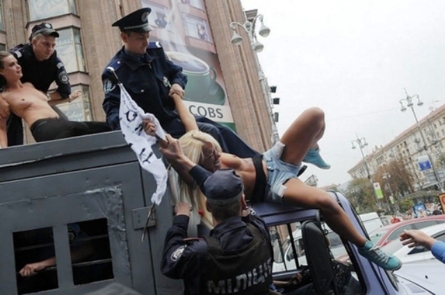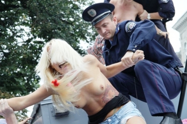 Фото. Украинский милиционер заглянул в штаны феминистке и увидел там… Юлию Тимошенко Печать E-mail