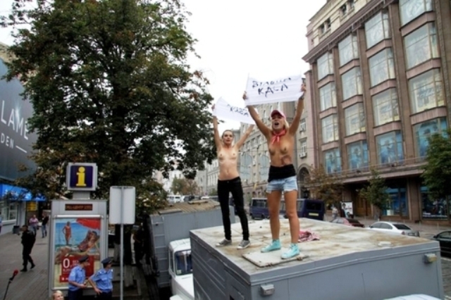 Киев. Юлия Тимошенко. FEMEN. Полуголые бабы. Секс на крыше автозака.