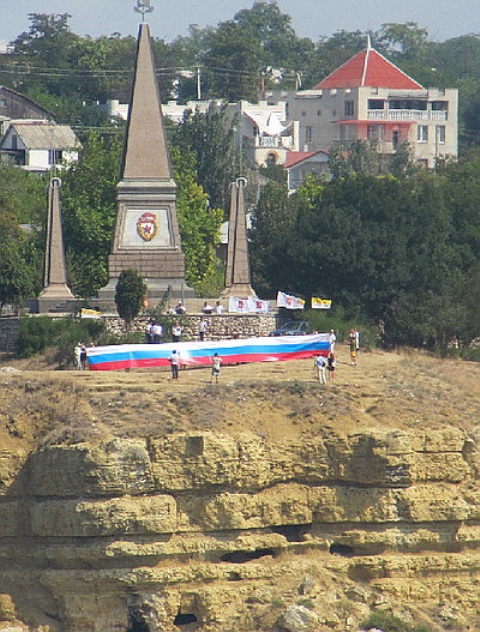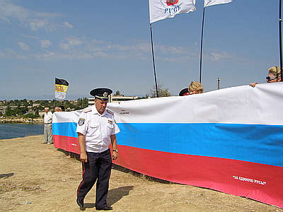 Русские активисты в день празднования 20-летия независимости Украины развернули на берегу главной бухты Севастополя огромный флаг России. -Целью нашей акции было показать, что для простых севастопольцев день независимости Украины праздником не является, это – траурный день, – пояснил «Новому Региону» организатор Владимир Тюнин.- Развернув 15-метровый флаг РФ, мы также хотели показать, что будущее Украины – только в союзе с Россией», – добавил активист.