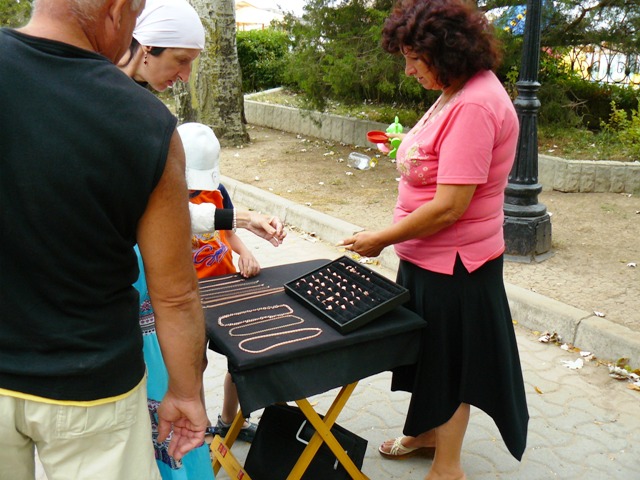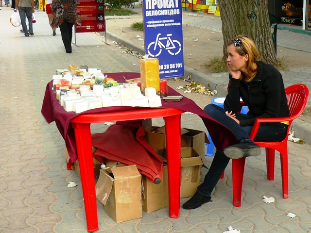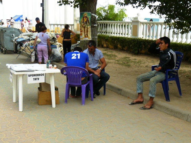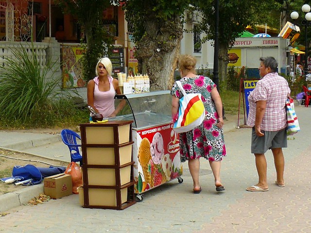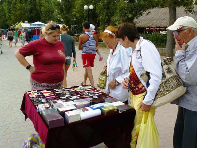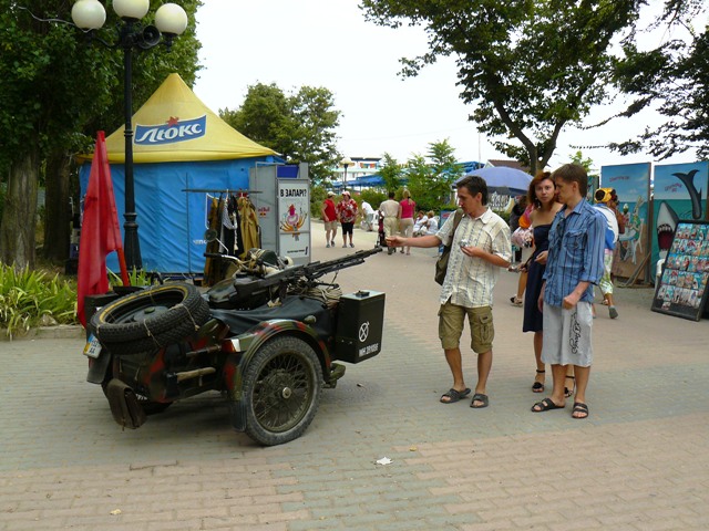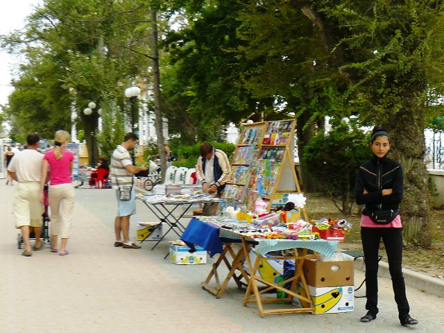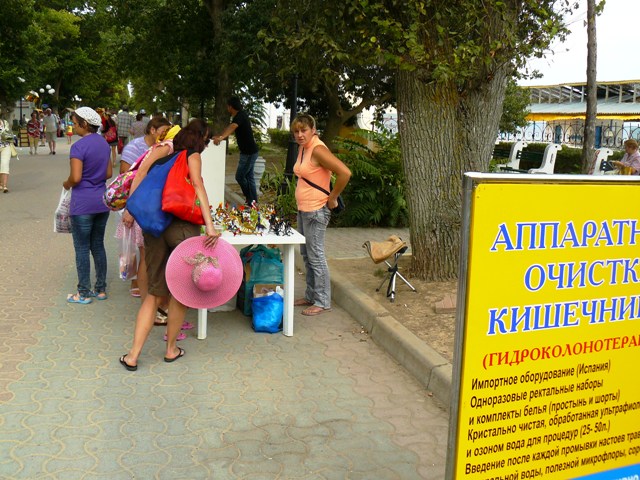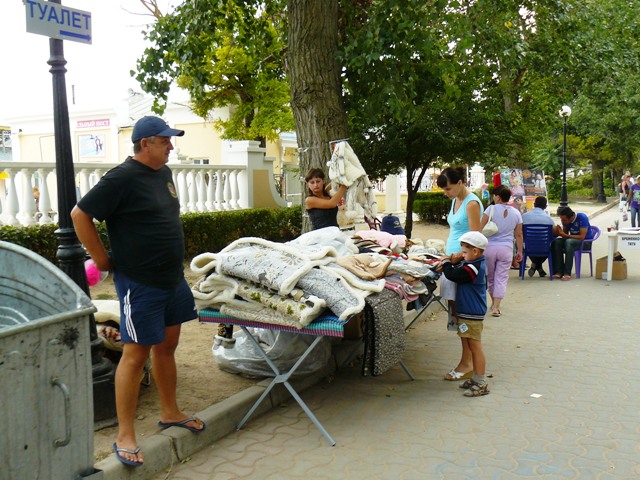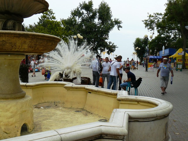 ЕвпаторияЧестно признаюсь, хотел сделать рекламный фоторепортаж из Евпатории, чтобы зазвать, пригласить и убедить тех, кто еще размышляет. В Евпатории – бархатный сезон, что может быть лучше. Пустынные пляжи, теплое море, чистые набережные и дешевые фрукты. Короче, сам бы поехал, но я уже здесь. Беру фотоаппарат и на набережную имени Горького. У входа в парк Фрунзе – роскошный красный автомобиль. Любой крестьянин может сесть за руль и изобразить из себя, крутого украинца… за деньги. Тут же у фонтана – знакомые живодеры-фотографы с павлинами. Не убиваемый евпаторийский бизнес. Помнится, с этими павлинами фотографировались за деньги сотрудники прокуратуры. Фас, профиль, протокол. После чего изгнали из милиции начальника над всеми  участковыми  Евпатории. И что, как стояли павлины с живодерами под милицейскими видео камерами у фонтана, так и стоят. Похоже, опять у дежурного по ГОВД что-то с техникой. Может объектив запотел, а может глаз «замылился».  Посмотрел по сторонам, ни участкового, ни патрульных, одни павлины. Иду дальше, а там цыганский сервис на любой вкус. Помнится, вначале лета проверяющие говорили, что никому из коробейников разрешений на торговлю в исполкоме не выдавали, а они простояли все лето, и отстоят бархатный сезон. Нет, я, конечно же, за торговлю. Тем более что товары и услуги тех, кто стоит, пользуются спросом у туристов. Вот, только смущает меня одна деталь, те, кто на законных основаниях торгуют на набережной – заплатили в бюджет десятки тысяч гривен, а те, кто стал рядом – платят «крыше» необлагаемую налогами мзду. Но это еще не все, когда в исполкоме утверждали и согласовывали торговые места, то делали так, чтобы торговцы не мешали проходу туристов. Но если к десяти официальным, прилепить пятьдесят незаконных – то там уже не то, что мусоровозу проехать, иноземцу не протиснуться между рядами.