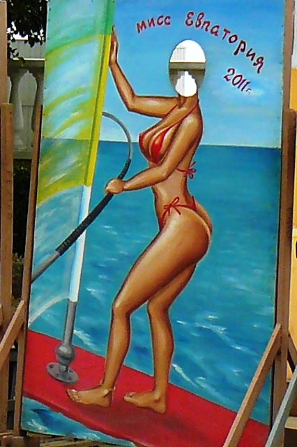 И какой вывод из выше показанного. Господа, туристы, добро пожаловать в Евпаторию. У нас на набережной есть красный автомобиль с павлинами, бутафорский мотоцикл с пулеметом  и фанерные девицы с дырами вместо головы. Ну, где вы еще такую экзотику увидите. Запостил на фейсбук полуголую фанерную бабу – память на всю жизнь. Но самое главное, в Евпатории на набережной - ни одного милиционера, который хотел бы и мог, одни телекамеры за деньги городской громады круглые сутки для дежурного по ГОВД художественное кино снимают. А может, это кино в «Ракете» перед сеансами показывать или по телевидению крымскому?