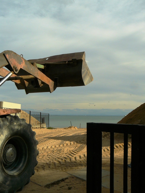Фото. Бульдозером по евпаторийскому пляжу. В парке Фрунзе закрыли курортный сезон |
