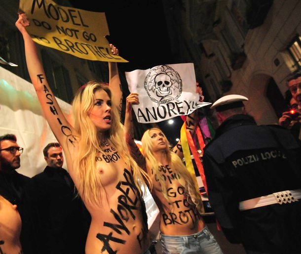 Фото. Украинские феминистки из FEMEN напали в Италии на Versace |