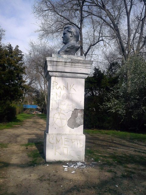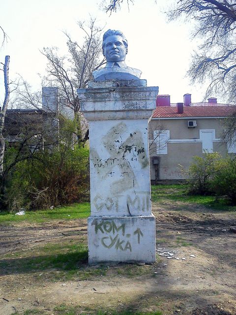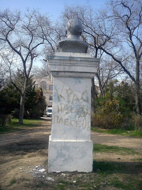 В центре Евпатории, на улице Кирова, накануне открытия курортного сезона неонацисты нарисовали свастику на памятнике Кирову.  Свастика на памятнике соседствует с надписями «Смерть КП», «Красная плесень» и др. и носит явно политический характер. Направлены эти действия вроде бы против коммунистической партии Украины. Но для Евпатории, где в годы Великой Отечественной войны были расстреляны более 12 тысяч евпаторийцев и бойцов Красной армии – это надругательство над памятью погибших. А если учесть, что свастика на памятнике, появилась накануне дня, когда во всем мире вспоминают о жертвах холокоста, то становится понятной направленность этой подлой провокации. Причем списать это преступление на действия малолетних дебилов на этот раз не получится. Неразумным подросткам нет никакого дела до коммунистической партии и ее бывших вождей. За этой провокацией, как мы полагаем, стоят украинские националисты, которые сегодня выстраиваются под флагами неофашистов одной из украинских партий. Именно эти люди устраивают массовые шествия и митинги в поддержку недобитых фашистов на Западной Украине, восхваляют зверства ОУН-УПА и прочего фашистского отребья с телеэкранов и со страниц газет. Особо стоит отметить, что в Евпатории уже оскверняли свастикой синагогу и другие здания. Причем о задержании преступников и привлечение их к ответственности милиция не сообщала. Мало того, на некоторых евпаторийских форумах в Сети анонимные авторы свободно публикуют антисемитские высказывания, занимаются разжиганием межнациональной вражды, но и этого не замечают сотрудники службы безопасности курортного города. Возникает вопрос, почему так происходит? Неужели украинские спецслужбы настолько беспомощны, что не могут установить и привлечь к ответственности группу неофашистов, открыто действующую в Крыму? А может, за этой «беспомощностью» стоят, оставшиеся в спецслужбах «оранжевые» кадры Ющенко, Тимошенко, Наливайченко?
