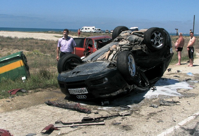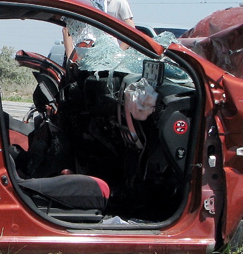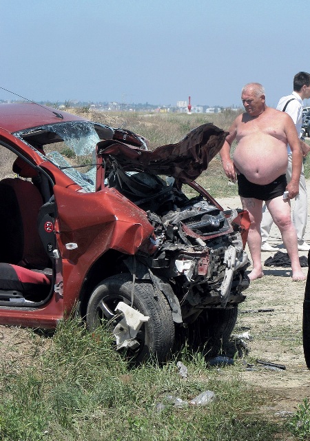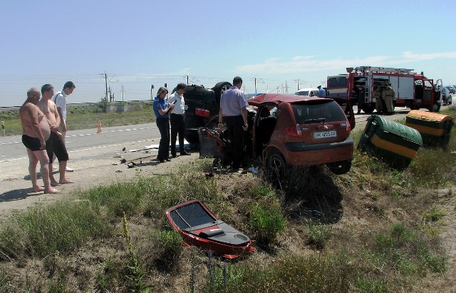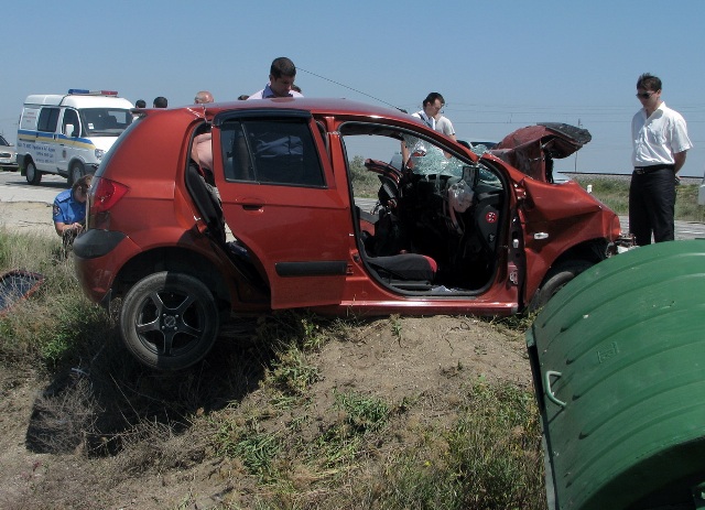 В результате ДТП также пострадали пассажирка «Hundai» - женщина 1971 года рождения (жительница города Евпатория) и водитель автомобиля «Аudi» - мужчина 1977 года рождения, гражданин Российской Федерации. Медики диагностировали у женщины сотрясение головного мозга, закрытую черепно-мозговую травму, тупую травму живота, ушиб грудной клетки, перелом ребер, состояние тяжелое. Она находится в реанимационном отделении Евпаторийской городской больницы. У мужчины медики диагностировали перелом 5-8 ребра, тупую травму живота - состояние средней тяжести. Находится в травматологическом отделении Евпаторийской городской больницы; Спасателям c помощью гидравлического инструмента пришлось вытаскивать пострадавшую женщину - пассажирку, которая оказалась зажата в корейском автомобиле. С целью предотвращения возгорания легковых автомобилей спасатели отключили аккумуляторные батареи в машинах и смыли разлитое топливо с проезжей части. На фото: ДТП в Крыму.       Фото Юрия Теслева Евпатория. По материалам МЧС Украины. 7:23 13.06.2012 Крым. Украина. Россия. День России. Кровавое ДТП на Украине. Граждане России погибли в Крыму.
