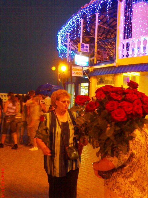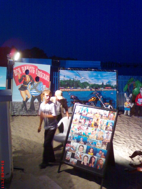 А вот и красный фонарь рядом с зеленым волосатым кактусом. А может, это и не кактус, а нечто другое. Да, это и не важно. Потому что вы в Евпатории. А в Евпатории море, солнце, пляжи за небольшие деньги, страшные монстры на улице Фрунзе и ни одного турка. Приезжайте, не пожалеете. Это не Турция, здесь вас «не кинут на бабки», и не вышвырнут из гостиниц, как последних лохов. Потому, что это ЕВПАТОРИЯ. Такая, как есть. Без ретуши и фотошопа. Кстати, здесь можно было посмотреть стриптиз прямо у дверей горисполкома. Для тех, кто опоздал и не видел. "Фоторепортаж. "Комсомольская правда" проспонсировала стриптиз на главной площади Евпатории".