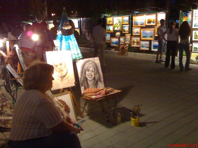 Но есть здесь кое-что и для политически активных. Как вам лозунг: «Вся власть Советам» с черной дыркой вместо головы. Просуньте туда что-нибудь, и все сразу станет на свои места. Тем же, кого воротит от украинского кича на крымских курортах, мы предлагаем натуральные розы. С доставкой дороже, но почему бы раз в жизни и не осчастливить собственную супругу? А рядом с розами за пару минут ваш портрет. Качество гарантирую.