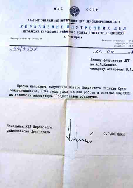 На втором снимке - личная история. У меня было два шикарных распределения: одно - в журнал "Архитектура и строительство Ленинграда", где я уже работал в штате. Второе - в МВД. Причем, интересно, что я не просился в органы. Сами вычислили как-то. Если бы пошел, думаю, до полковника дорос .