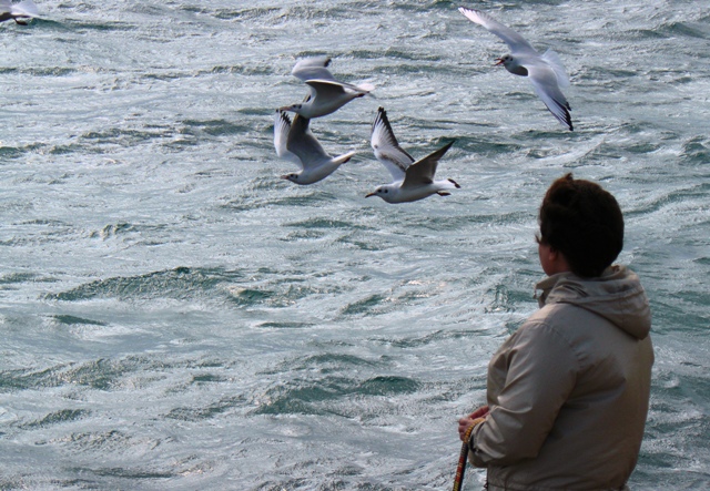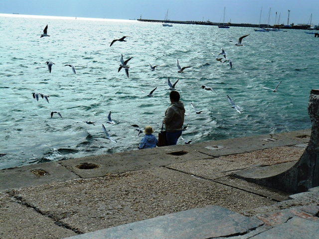 Был 27 день сентября. Синоптики выдали штормовое предупреждение для Крыма и Евпатории. И что интересно, на этот раз не ошиблись. После жаркого лета Евпаторию охладил злой северо-восточный ветер. В Каламитском заливе он поднял небольшую волну, изгнав из воды курортников. Туристы, одевшись потеплее, кормили птиц, а где-то далеко у берегов Болгарии в это время тонул украинский сухогруз, но об этом в Евпатории еще никто не знал. Крымский папарацци щелкал затвором фотоаппарата, пытаясь «написать картину маслом» под названием «ОСЕНЬ В ГОРОДЕ». Но настоящей осени не получилось. Люди на набережной, чайки и совсем нестрашное море – вот что осталось в электронной памяти фотоаппарата. А вернувшись домой, узнал из Сети, что у берегов Болгарии обнаружили спасательный плот с затонувшего сухогруза и ни слова о спасенных. А в Каламитском заливе шторм был совсем не страшен и, Черное море никому не грозило бедой. Люди с берега кормили чаек.