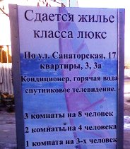 Реклама на Санаторской ЕвпаторияНа улице Санаторской в Евпатории я уже не был несколько лет, хотя она и расположена в центре курортной зоны. К морю по ней идти неудобно, весь курортный люд на набережную имени Горького идет по Дувановской. По этой причине, скорее всего, обходят стороной Санаторскую улицу  и местные чиновники,  и милиция. Кстати, милиция от Санаторской находится в трех минутах ходьбы. Сама же Санаторская упирается прямо в один из корпусов санатория «Ударник». Вот только пройти к санаторию по тротуару уже невозможно из-за того, что ушлые дельцы, наживающиеся от сдачи квартир, застроили не только свои дворы апартаментами для курортников, но и сам тротуар. Об этом мне рассказал лидер караимской общины Евпатории Сергей Синани. В этот же понедельник я отправился на Санаторскую и был поражен тем, беспределом, который творят в нашем городе некие граждане. Они действительно превратили тротуар в «золотую жилу», расширив свои строения до самой дороги. Жуткое впечатление представляет и сама дорога на Санаторской. Складывается впечатление, что в городе нет ни архитектора, ни милиции, ни прокурора. «Крымский аналитик» решил показать жителям Евпатории, во что превратили местные дельцы одну из самых ухоженных в советское время улиц. Итак, господа-товарищи, смотрите 25 фотографий для ПРОКУРОРА И ГЛАВНОГО АРХИТЕКТОРА ЕВПАТОРИИ. ЭТОЙ УЛИЦЕЙ МОЖЕТ ГОРДИТЬСЯ ГОРОД!