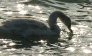 Каждую зиму в Евпаторию прилетают белые лебеди. Узнав об этом взрослые приводят своих детей на набережную имени Терешковой кормить птиц. Не стал исключением и 2009 год. Сегодня евпаторийцы кормят перелетных птиц хлебом,булками, а лебеди в ответ охотно позируют фотографам. А вот что пишут о белоснежных красавцах в Википедии. "У взрослых птиц белое оперение, очень длинная шея, вытянутое тело и голова средней величины с оранжево-красным клювом, у основания которого есть характерный чёрный нарост. Шипуном назван из-за звука, издаваемого при раздражении. В длину может достигать 180 см, масса самок 5,5-6 кг, самцов 8-13 кг размах крыльев лебедя-шипуна около 240 см. Шея толще, чем у кликуна, потому кажется более короткой. Лебедь-шипун обитает в северной части Европы и Азии. Всюду довольно редок. Однако при помощи человека этот вид лебедей успешно прижился в Северной Америке, Южной Африке, Австралии и Новой Зеландии.По образу жизни шипун во многом сходен с кликуном. Населяет заросшие водной растительностью водоёмы — лиманы, озёра иногда болота. Плавая, шипун часто изгибает шею в форме буквы «S». Охота на лебедей была полностью запрещена в 1960-х годах. С тех пор наблюдается постоянный рост численности лебедей в результате охраны и подкормки людьми. Шипун легко приживается в неволе и полуневоле, часто содержится на водоёмах городских парков, садов, различных санаториев как декоративная птица.