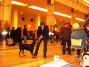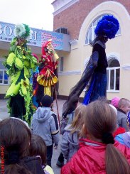 В Евпатории на железнодорожном вокзале евпаторийские великаны-ходулисты встретили «Поезд здоровья» из Москвы, в котором, на осенние каникулы приехало свыше пятисот школьников.