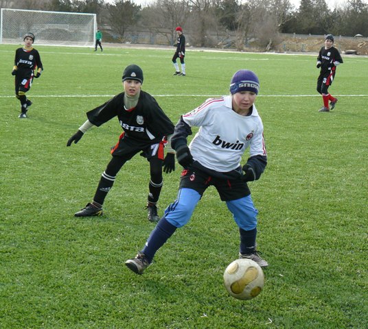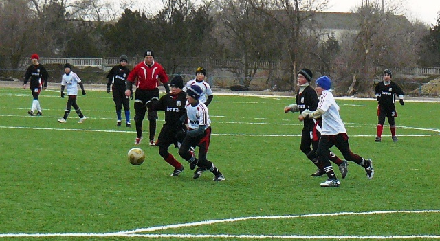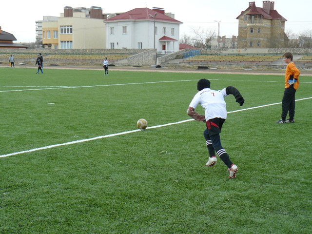 В Крыму, в Евпатории на искусственном футбольном поле сыграли в футбол школьники Украины |