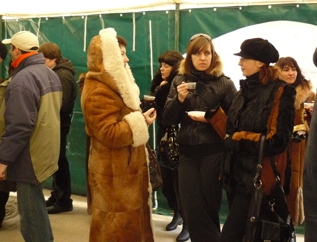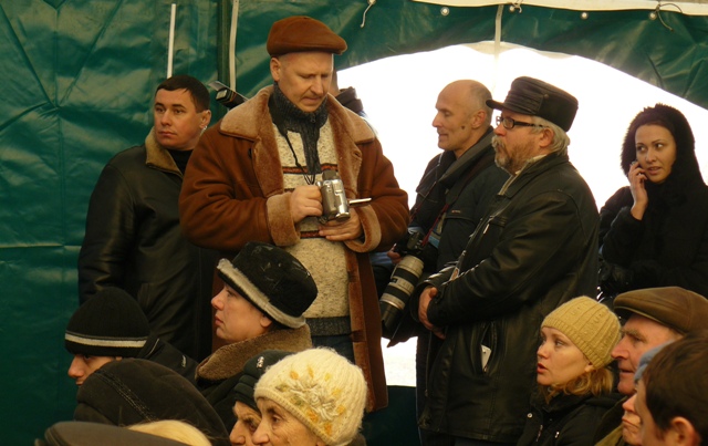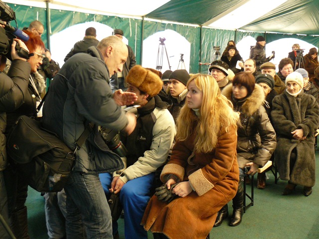 За несколько минут до появления в шатре Юлии Тимошенко, приставленные к журналистам сотрудники госохраны объяснили нам, кто и где должен стоять и очистили место для «журналистского премьерского пула». Им первые ряды и лучшие места для съемок. И на эту несправедливость никто не обиделся. Ну, кто мы такие,по сравнению с теми, кто допущен к телу и ежедневно в Кабмине Украины «снимает паркет».