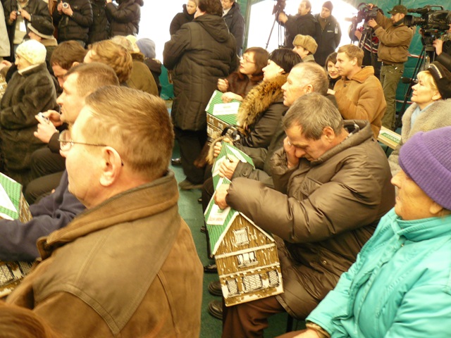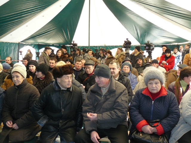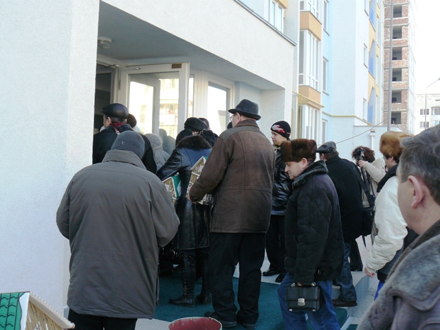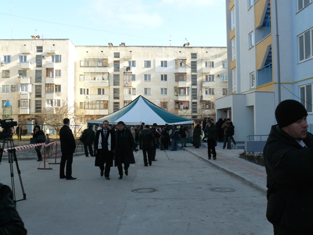 Потом премьер в сопровождении местных чиновников, осмотрела построенные квартиры и отправилась в школу искусств, раздавать ордера, тем, кто проживал в соседних подъездах взорванного дома. И пока колонна автомобилей несется по улицам Евпатории, у вас, уважаемые читатели, есть время посмотреть, что же происходило в шатре у нового дома во время визита Юлии Тимошенко в Евпаторию.