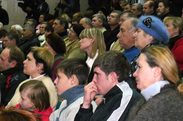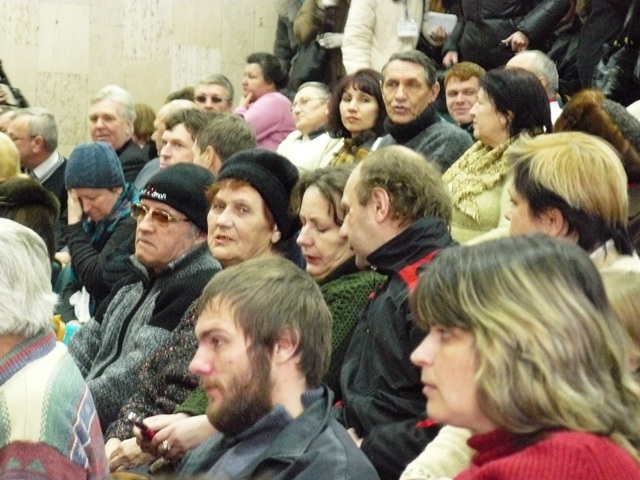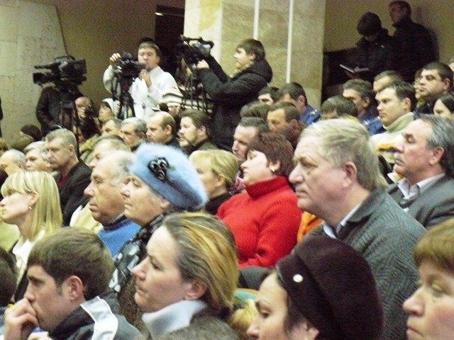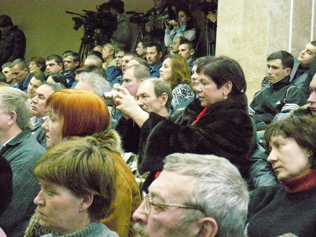На одном крымском интернет-форуме, накануне визита Юлии Тимошенко в Евпаторию, я прочитал разные нехорошие слова в адрес премьера. Анонимный автор даже грозился прийти на встречу с Юлией Тимошенко и бросить в нее свой башмак. Но скандала в Евпатории не случилось. Охрана отмела посторонних и в актовый зал пропустили только сотрудников милиции, МЧС и жителей взорванного дома, которым в школе искусств должны были вручить ордера на квартиры. А для того, чтобы какой-нибудь полоумный террорист не пронес с собой оружие, приглашенных пропускали через рамку металлоискателя. Вот только рамка эта простояла недолго. Подъехавшие журналисты отчаянно зазвенели фотоаппаратами, объективами, телекамерами. Охранники пытались досмотреть, желающих запечатлеть премьера, но осознав бессмысленность этой затеи, освободили дорогу от надрывающейся сигналами тревоги металлической рамки. В актовом зале пишущих журналистов загнали на самый верх вместе с телеоператорами, фотографы пристроились в проходах. Наконец, перед евпаторийцами предстала Юлия Тимошенко. Вступительная речь ее была похожа на ту, что она произносила в шатре у дома при вручении ключей. Юлия Тимошенко с народом общалась на русском языке. Хвалила своих подчиненных бютовцев, жаловалась на козни президента и его окружения, рассказывала и о несовершенстве Конституции. Если бы это все услышал Роман Бессмертный, то он непременно бы напомнил Юлии Тимошенко о пиаре за государственный счет и назвал бы цену ее визита в 250 тысяч гривен.
