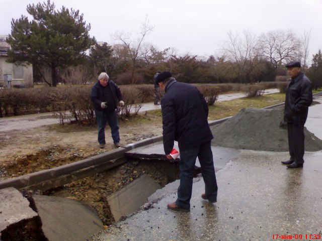 Очередное ЧП в Евпатории. Сегодня 17 января 2009 года в 4 часа утра на улице Интернациональной в Евпатории под землю провалился спец. автомобиль по перевозке хлеба. По словам очевидцев, грузовой автомобиль двигался от железнодорожного вокзала по улице Интернациональной в сторону хлебозавода. Не доезжая несколько метров до перекрестка, передние колеса грузовика неожиданно провалились под землю и оказались в старом канализационном коллекторе. От удара был поврежден передний мост и колесо автомобиля. Водитель остался жив, получив легкие травмы. Прибывшие на место происшествия сотрудники аварийных служб вытащили автомобиль из канализации и отправили на ремонт. А через несколько часов на место аварии приехала ремонтная бригада, которая стала засыпать прохудившуюся канализацию песком. Директор коммунального предприятия Юрий Нерадько пояснил корреспонденту «Крымского аналитика», что асфальт провалился над старым уже не работающим канализационным коллектором. Новая же канализационная труба, установленная недавно, во время аварии не пострадала.