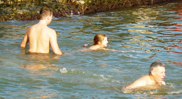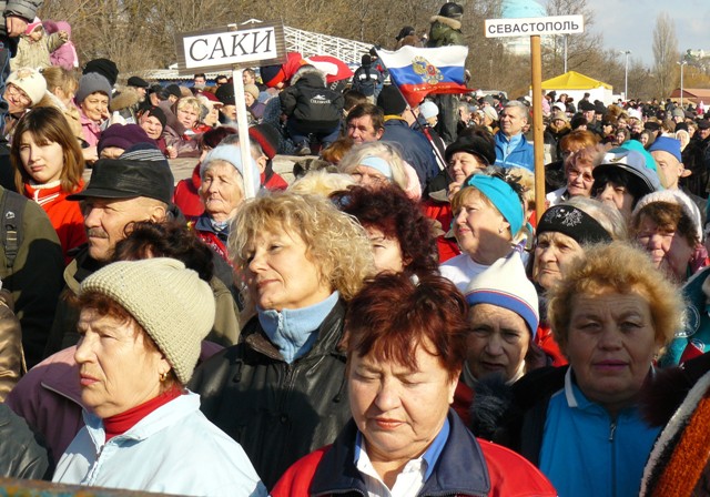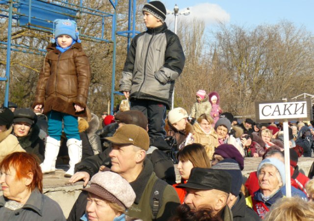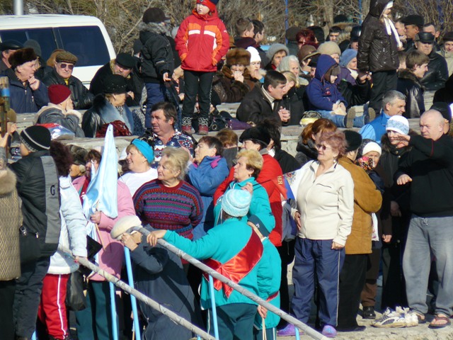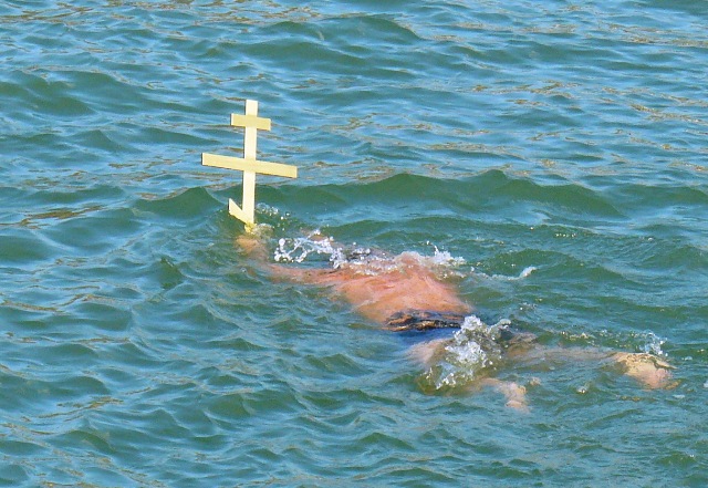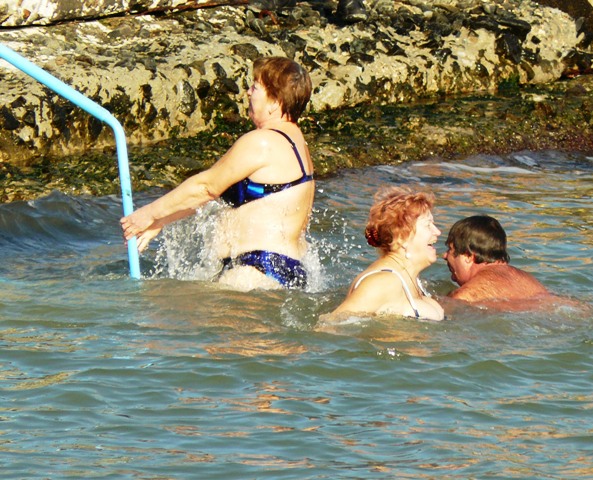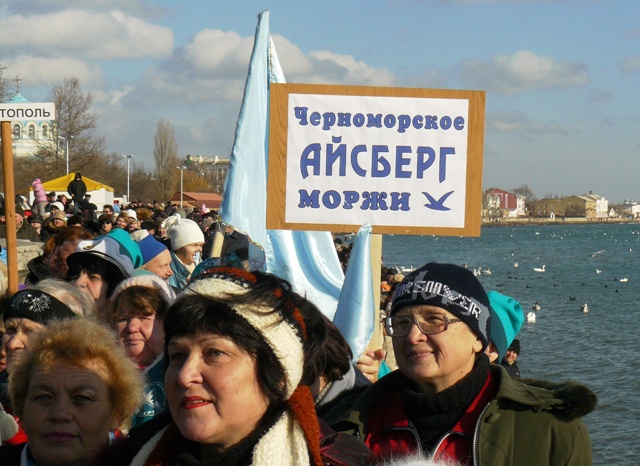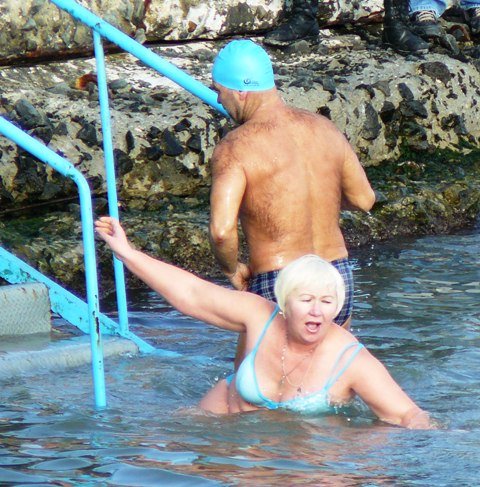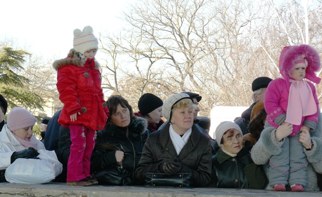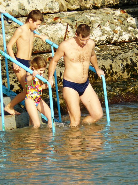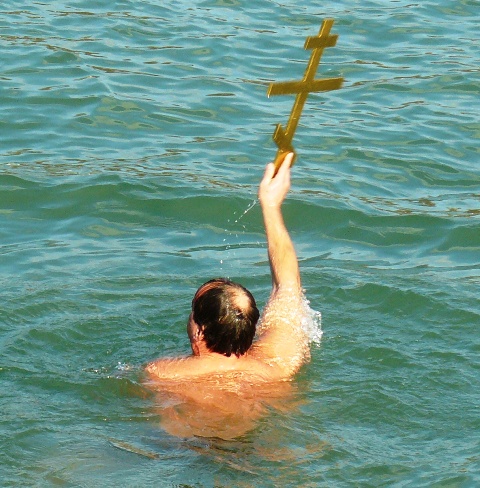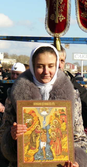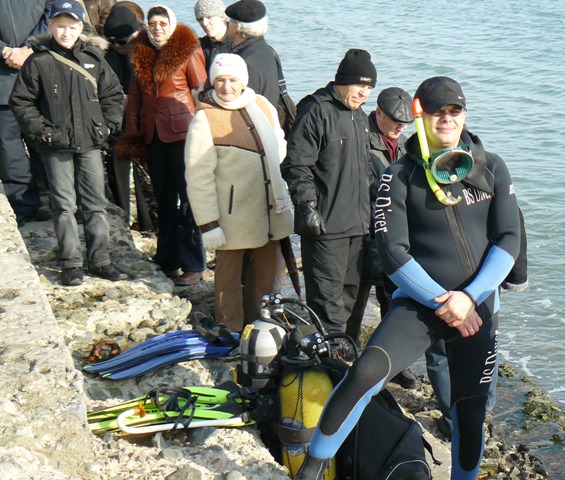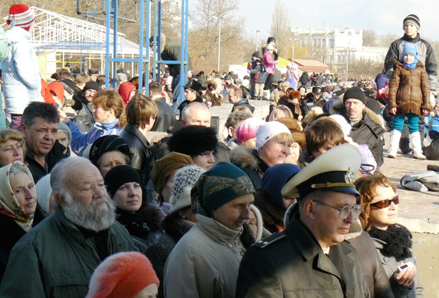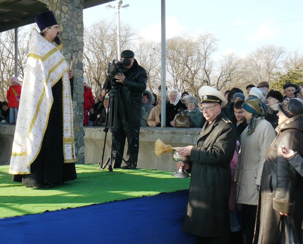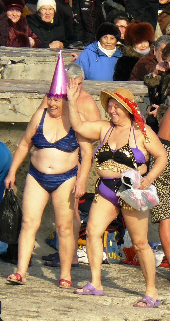 Моржи в ЕвпаторииВ Крыму в Евпатории на набережной имени Терешковой, сегодня 18 января, собрались несколько тысяч тепло одетых евпаторийцев и пару десятков жителей  России, Украины и Крыма в купальниках и плавках. Пока первые щелкали фотоаппаратами, вторые - устроили массовый заплыв в холодных водах Черного моря. Массовости слету моржей добавили верующие из Ильинской церкви. Отец Георгий не только благословил любителей зимнего плаванья, но и бросил с причала в море крест. Один из опытных моржей отыскал крест в морской воде и доставил его на берег. За купанием моржей зорко следили сотрудники милиции и спасатели из МЧС в водолазных костюмах. К счастью, помощь спасателей не понадобилась. Моржи достойно держались в ледяной воде, говорили о том, что купание в море зимой многим из них вернуло утраченное здоровье и помогло излечиться от тяжелых недугов. Кроме взрослых  в заплыве участвовали и дети, которые смело вошли в воду и проплыли несколько метров под присмотром своих родителей – моржей. В этот же день, на территории церкви желающим наливали освященную воду из автоцистерны.