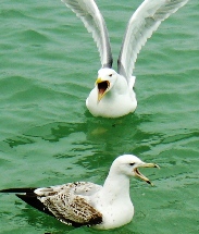 Туманным февральским днем прихожу на набережную Терешковой в Евпатории. У берега сотни голодных птиц. Пенсионерка на причале целится хлебом в гордого лебедя. Она хочет накормить эту грациозную неповоротливую птицу. Но лебедю опять ничего не досталось. Кусок хлеба на лету подхватила белоснежная чайка. - Опять баклан! – возмущается пенсионерка, - кыш, подлый! Стоящие рядом  мальчишки достают из портфеля бутерброды и батон. Но в отличие от пенсионерки хлеб не крошат, а бросают  в голодных птиц большие куски батона. Они надеются, что баклан не сможет выхватить из воды тяжелую приманку, и она достанется белоснежному лебедю и черным уткам. Но не тут–то было. У наших ног разворачивается настоящая голодная драка, заводилами которой стали все те же  бакланы. И тут я начинаю понимать, почему в зоне хулиганов называют по фене бакланами. А может, в море дрались за хлеб не бакланы, а чайки - души умерших моряков, символ Крыма, Евпатории? Я не знаю, как определить, находясь на причале, кто из дерущихся за хлеб, благородная чайка, а кто отмороженный баклан – хулиган.  Может, это удастся сделать читателям «Крымского аналитика». Я публикую фотографии морского кормления хищников без подписей, в надежде, что знатоки крымской природы самостоятельно смогут определить  участников зимней голодной драки в Каламитском заливе у берегов Евпатории. Пишите «Крымскому аналитику» и мы опубликуем ответы на вопрос: чем отличается благородная чайка от баклана – хулигана?