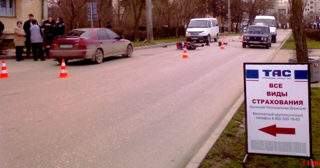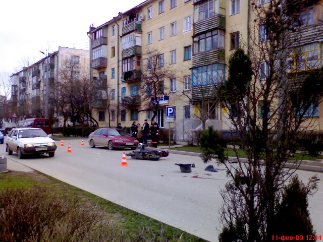 11 февраля в Евпатории произошла очередная авто авария на улице Интернациональной. На это раз на улице Интернациональной столкнулись два легковых автомобиля и мотоциклист. «Крымский папарацци» побывал на месте аварии сразу же после отъезда бригады «Скорой медицинской помощи». По словам врачей, мотоциклист доставлен в приемный покой евпаторийской горбольницы с травмой головы. В настоящее время милиция пытается разобраться, кто нарушил правила уличного движения, и из-за чего произошло столкновение транспортных средств. Напомним, что на этой же улице в Евпатории несколько дней назад перевернулся легковой автомобиль, которым управлял 17-летний юноша. Водитель автомобиля от полученных травм скончался, а его пассажиры были доставлены в больницу.