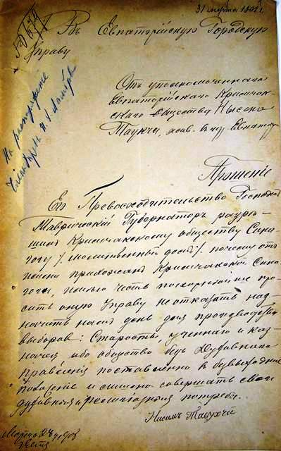 В 1908 г. крымчакская община открывает в Евпатории собственный молитвенный дом. Для этого община арендовала дом Э.Шишман (ныне жилой дом № 8 по переулку Степовой). С разрешения Строительного Отделения Таврического губернского правления от 12 марта 1908 г. дом был перестроен, приспособлен для проведения богослужений.10. 17 августа 1908 г. в здании Городской Управы были проведены выборы членов духовного правления крымчакского молитвенного дома. Из 37 членов общества, имеющих право участия в выборах, присутствовал 31 человек. В ходе голосования на должность старосты был избран Нисим-Хаим Мееров Таукчи, на должность казначея – Юфуда Эфроимов Кокуш, на должность ученого – Абрам Лейзеров Абрабен.11.