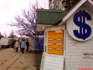 А теперь о наличном курсе валют установленном на 14, 15 и 16 марта в обменных пунктах Крыма. Фото мониторинг курса обмена валют по традиции был проведен в Евпатории 14 марта 2009 года. 100 долларов США в обменниках Евпатории покупали у населения по 805 - 812 гривен, а продавали ту же сотню баксов клиентам по 825 - 840 гривен. 1000 российских рублей покупали у населения за 200 - 225 гривен, а продавали клиентам за 235 - 245 гривен. 100 евро покупали у населения за 1030 - 1045 гривен, а продавали ту же сотню евро за 1060 - 1095 гривен.