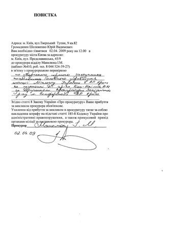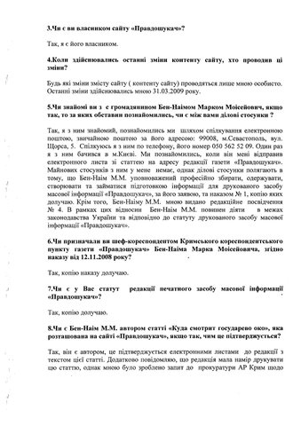 SOS! НАСТУПЛЕНИЕ НА СВОБОДУ СЛОВА В УКРАИНЕ  В последнее время участились случаи давления правоохранительных органов на журналистов, осмелившихся писать правду о массовых преступлениях против собственного народа, которые совершают высокопоставленные чиновники. Прославившийся своими способностями выполнять политические заказы начальник Крымского главка милиции Николай Ильичев отличился вновь. Преследованиям подвергся блогер, который пишет в Интернете статьи под именем Тарас Плеткин. Недавно «наезду» правоохранителей подвергся крымский журналист Марк Бен-Наим, который представляет в Крыму всеукраинскую правозащитную газету. В прикрепленном файле протокол допроса главного редактора газеты «ПРАВДОШУКАЧ» Юрия Шеляженко. Единственное, что интересовало прокуроров, это как статьи Марка Бен-Наим попадают на сайт газеты, членом редакционной коллегии которой он является. Напомним, что речь идет о серии статей под общим названием «Куда смотрит государево око…».