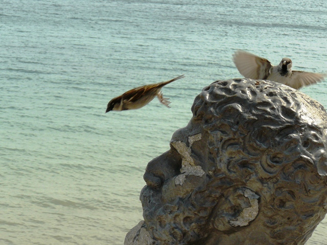 На первом фото, сделанном 21 апреля 2009 года в парке имени Фрунзе Евпатории запечатлен евпаторийский Геракл, изувеченный воробьями, которые привыкли сидеть у него на голове. Фото так и называется "Воробьи задолбали евпаторийского Геракла".