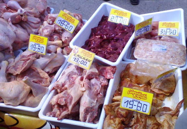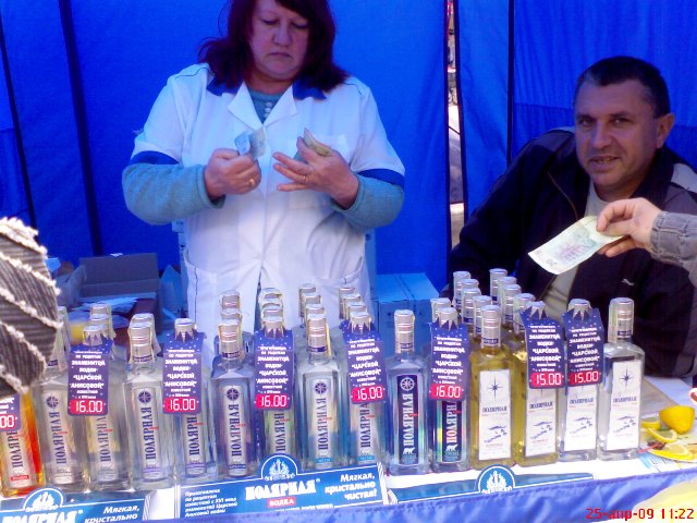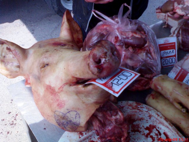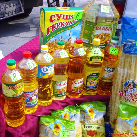25 апреля 2009 года в Евпатории на проспекте Победы прошла традиционная предпраздничная ярмарка. Напоминаем тем, кто не в курсе. 1 мая в Евпатории демонстрациями, парадами, «доской почета» и праздничными гуляниями отмечают не только СОЛИДАРНОСТЬ ТРУДЯЩИХСЯ ВСЕХ СТРАН, но и ОТКРЫТИЕ КУРОРТНОГО СЕЗОНА – 2009. «Крымский аналитик» решил внести свою лепту в рекламную кампанию города-курорта - антикризисным фото мониторингом рыночных цен в Евпатории. На ярмарку был откомандирован крымский папарацци, который фотографировал исключительно то, что продавали и, полностью игнорировал покупателей и продавцов. Называть «среднюю температуру по больнице», то есть уровень цен на продукты в Евпатории мы не будем, потому что «раки за три – вчера» могли быть меньше, чем «раки за пять – сегодня». Мы предлагаем оценить товар по фотографиям хозяйским взглядом, «без понюхать и пощупать». Это, конечно, не дает полного эффекта от пребывания на ярмарке, но все-таки лучше словесного репортажа рыночного репортера. Итак, «Крымский аналитик» предлагает вашему вниманию 38 фотографий самых ходовых продуктов питания в Евпатории «с ценой и качеством». Специально для иноземных товарищей напоминаем, что с курсом обмена валют в Евпатории на апрель 2009 года вы можете ознакомиться на « фото мониторинге курса обмена валют» все того же «Крымского аналитика».